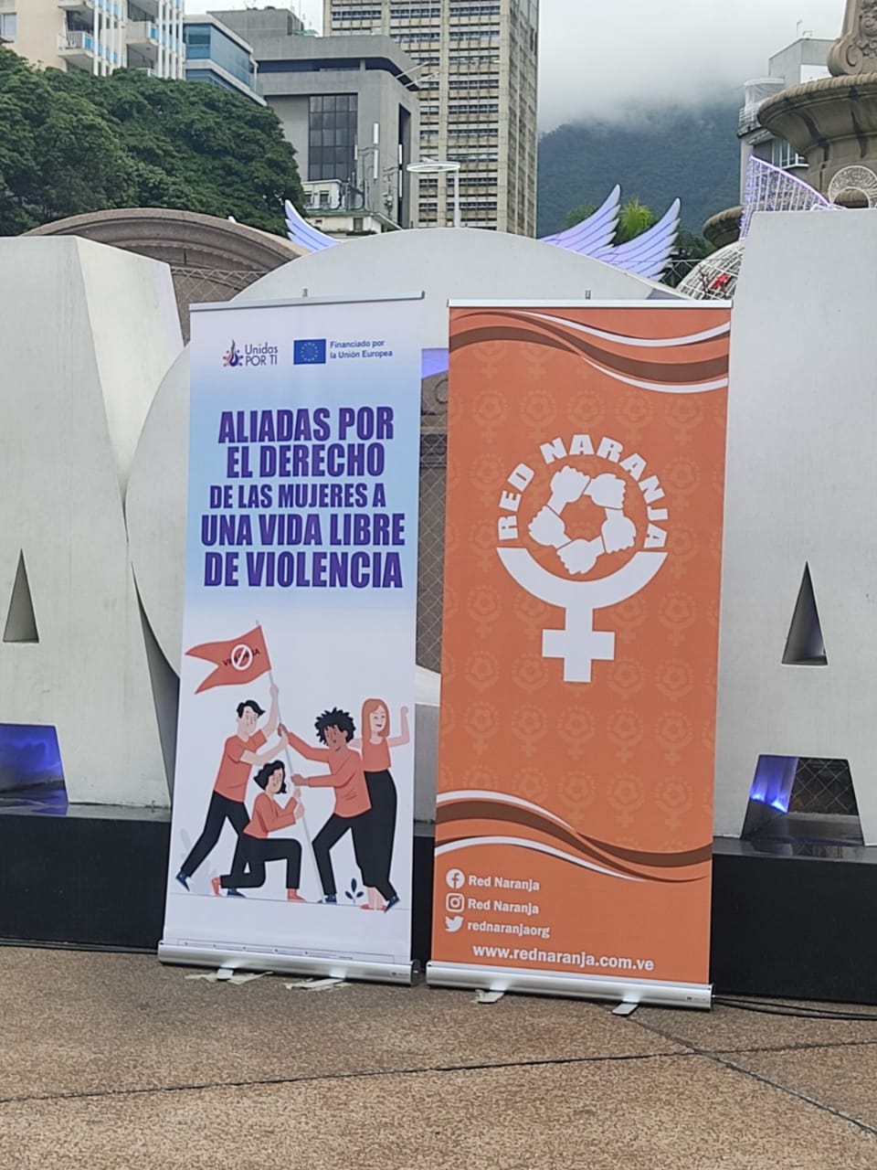 El encendido naranja del incónico Obelisco de la Plaza Francia de Altamira, realizado el pasado 25 de noviembre, fue organizado por la Red Naranja, la Alcaldía de Chacao y la alianza Unidas por Ti, integrada por el Centro de Justicia y Paz (Cepaz), la Asociación Larense de Planificación Familiar (Alapalaf), el Centro de Estudios de la Mujer de la Universidad Central de Venezuela (CEM/UCV) y la Fundación para la Prevención de la Violencia Doméstica hacia la Mujer (Fundamujer), con el apoyo fundamental de la Unión Europea en Venezuela, como parte de las actividades desarrolladas en el marco del proyecto «Aliadas por el derecho de las mujeres a una vida libre de violencia”.