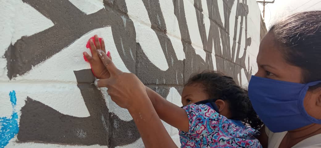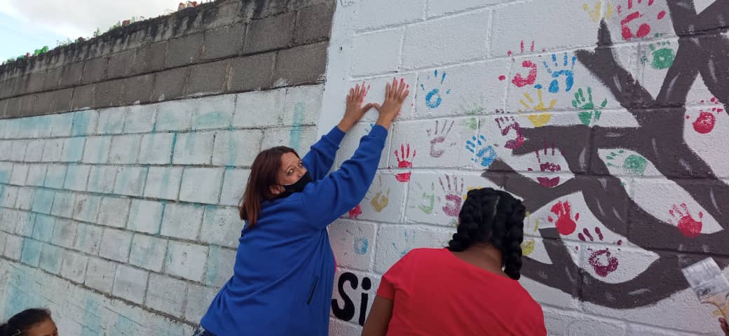 Juntas, las mujeres de los tres sectores buscaron los sitios ideales para realizar los murales. En la zona ubicada entre La Lira y El Guamo, escogieron uno de los muros del colegio Mamá Margarita.